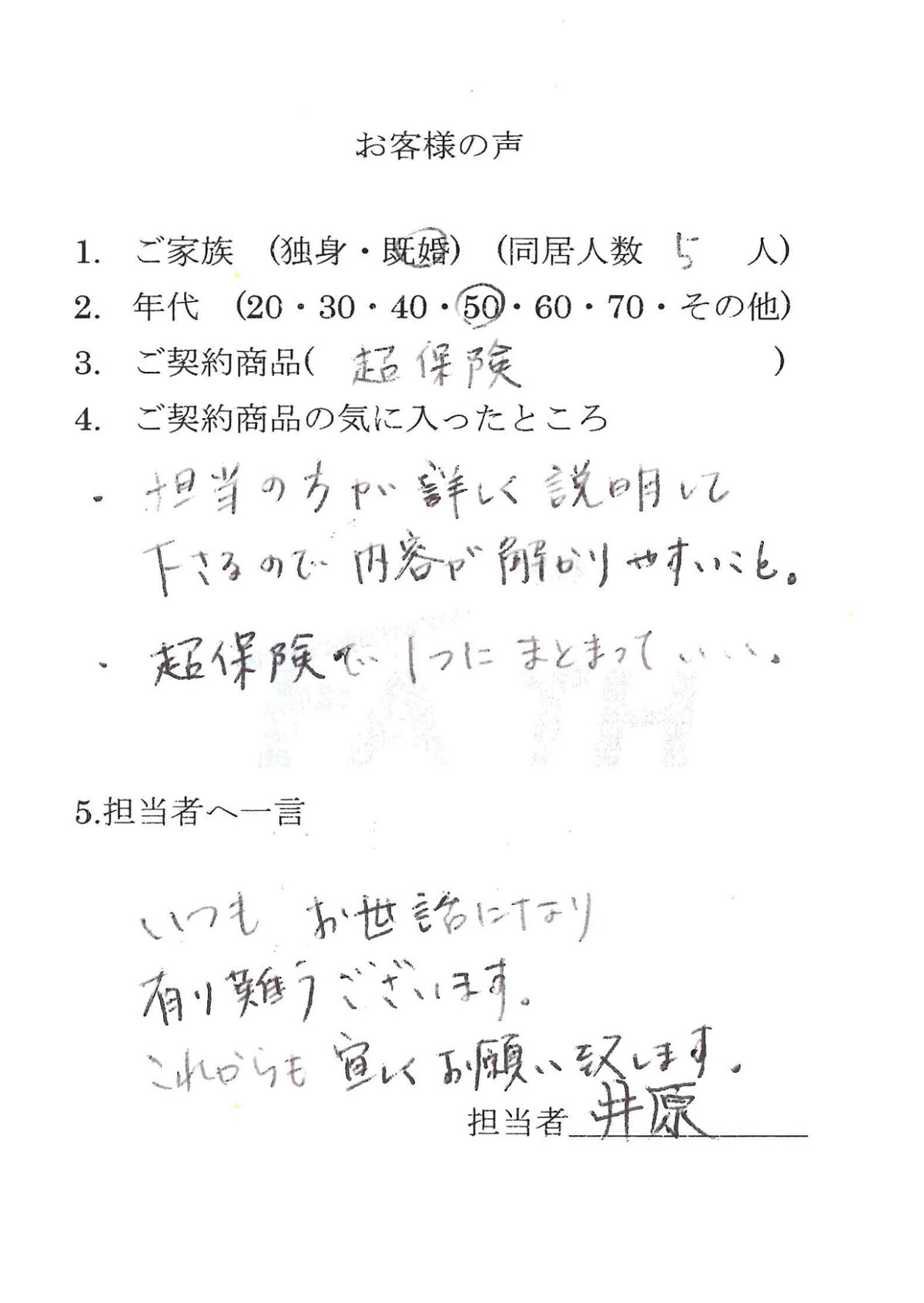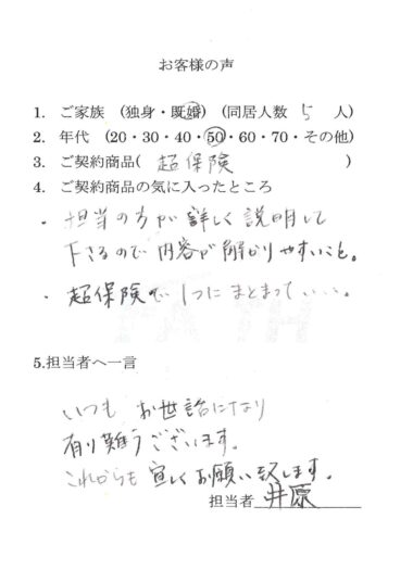 超保険をご契約頂いた個人のお客様