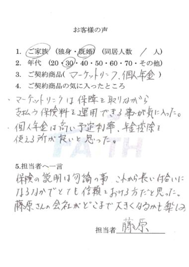 マーケットリンク、個人年金をご契約頂いた個人のお客様