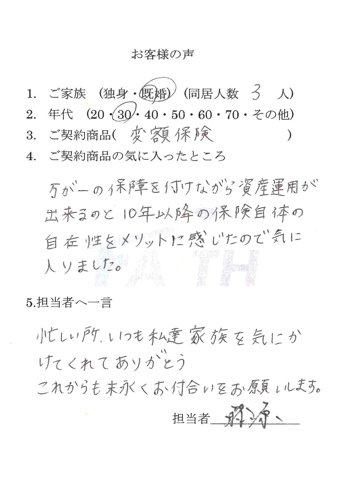 変額保険をご契約頂いた個人のお客様